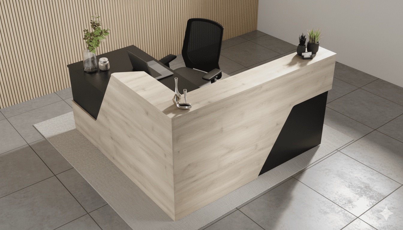 The Axton L Shaped Reception Desk combines modern aesthetics with practical functionality, making it the perfect choice for stylish office receptions in Dubai, Abu Dhabi, and across the UAE. Crafted with a premium light oak wood finish and complemented by sleek black accents, this reception desk exudes professionalism and elegance. Its L shaped design optimizes workspace while maintaining a welcoming front-facing style for clients and visitors. With ample surface area for computers, documents, and décor, the Axton desk is ideal for businesses seeking a balance between functionality and sophistication. Built for durability and everyday use, this desk enhances the overall impression of your office space.
