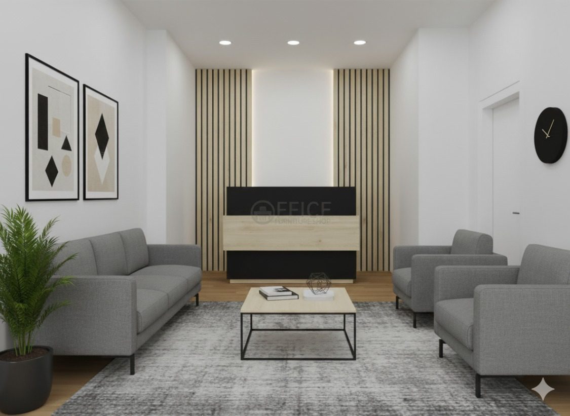 Simple and stylish low priced small reception desk with logo area at best price in Dubai, UAE. Size and color can be customized as per request. Shop online now!