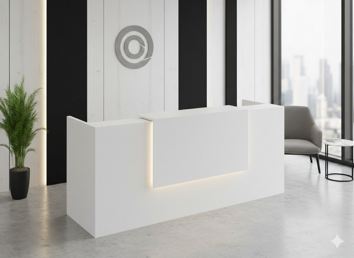 The Elite Full White Reception Desk is the perfect choice for businesses across the UAE, including Dubai, Abu Dhabi, Sharjah, Ajman, Fujairah, Ras Al Khaimah, and Umm Al Quwain. With its clean all-white design, this reception counter reflects sophistication, professionalism, and modern style. Crafted with premium materials, it offers durability and functionality while maintaining a minimalist aesthetic that suits corporate offices, medical centers, hotels, and retail spaces. The spacious surface ensures convenience for daily reception tasks, while its contemporary design enhances the welcoming atmosphere of any business environment. Whether you are upgrading your office lobby or setting up a new workspace, the Elite Reception Desk is designed to impress clients and visitors across all Emirates.