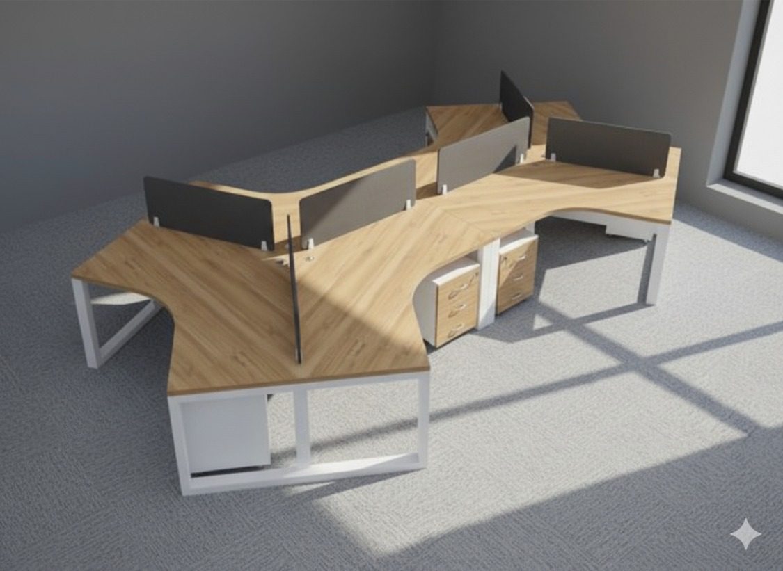 The Groove 6 person workstation combines a stylish minimalist look with functionality, characterized by woodenlegs connected by finely designed joints, the structure of the tables supports tops of different sizes whilst it is characterized by elements whose thickness is reduced to the very limit.