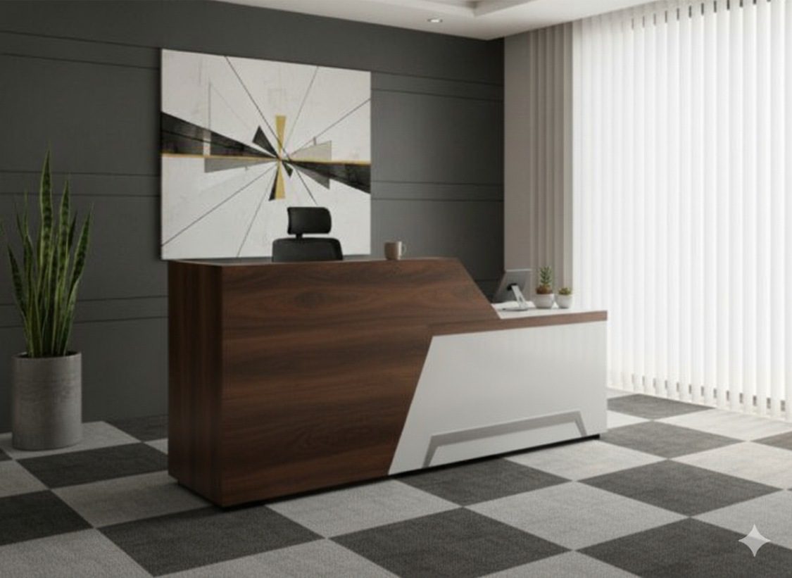 The Impulse Modern Reception Desk is a statement piece for businesses in Dubai, UAE seeking a contemporary and professional front-office solution. With its bold geometric design, dual-tone finish, and subtle gold accent, this reception desk adds a dynamic and welcoming touch to any workspace. Built with practicality in mind, it offers ample space for reception tasks, visitor check-ins, and daily office operations. Whether used in corporate offices, showrooms, clinics, or creative studios, the Impulse Reception Desk delivers a balance of style and functionality that enhances your brand’s image from the very first impression.