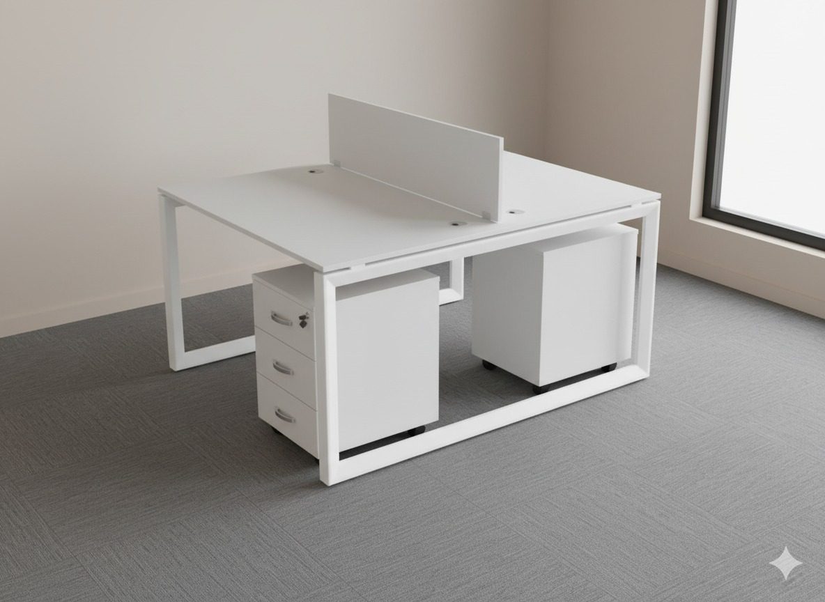 The Mezzo 2 Person Face to Face Workstation combines a stylish minimalist look with functionality, characterized by woodenlegs connected by finely designed joints, the structure of the tables supports tops of different sizes whilst it is characterized by elements whose thickness is reduced to the very limit.