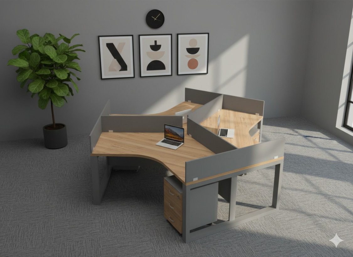 It is possible to configure the most diversified workstations by means of sound absorbent panels that are placed into a special housing in the table, which is also fitted with a cable hole and a cable tray.