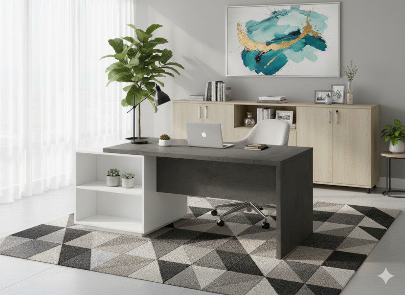 Modern and stylish modern office straight desk with storage. Best for managerial and executive rooms.