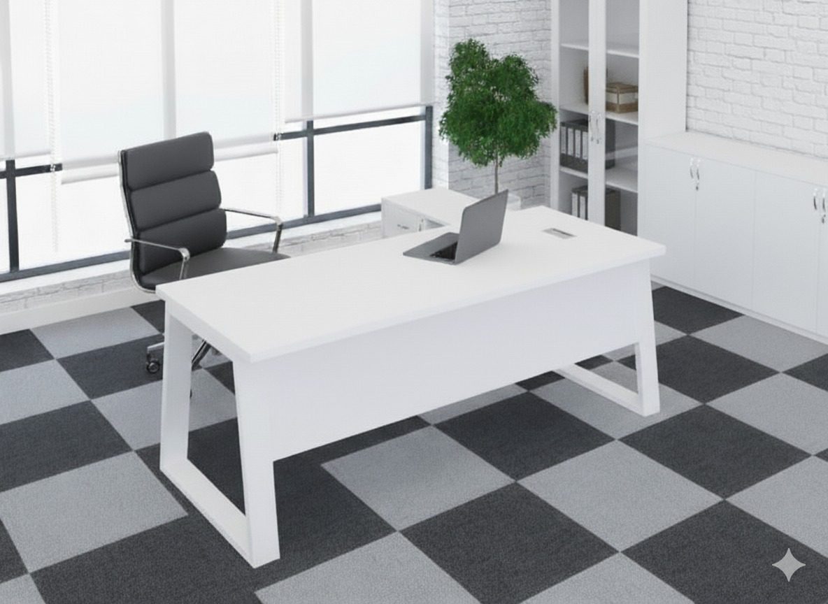 Full white color executive office desk for a sophisticated office look.